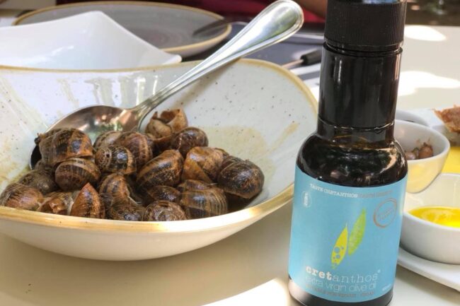 Χοχλιοί μπουμπουριστοί Απαραίτητα υλικά για ατελίωτη νοστιμιά: 1 κιλό χοχλιοί  500 ml λευκό ξηρό κρασί 1 ψιλοκομμένο κρεμμύδι 1 σκελίδα σκόρδο αλεύρι για όλες τις χρήσεις 1 φύλλο δάφνης λίγα φύλλα φρέσκο δεντρολίβανο 60 ml ελαιόλαδο Cretanthos Mountain EVOO 100 ml ξίδι από κόκκινο κρασί αλάτι πιπέρι   Εκτέλεση συνταγής βήμα-βήμα   Ρίχνουμε τους χοχλιούς…
