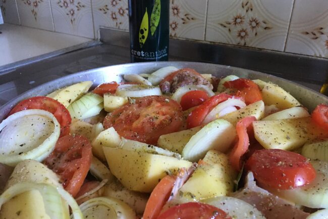 Ψητό στο φούρνο Υλικά που θα χρειαστούμε: 1 κοτόπουλο σε κομμάτια 3 μεγάλες πατάτες κομμένες κατά μήκος στα τέσσερα 2 ντομάτες κομμένες σε ροδέλες 2 ντομάτες κομμένες σε ροδέλες 2 φύλλα δάφνη 1/2 ποτήρι νερό ποτήρι ελαιόλαδο Cretanthos Bio Early Harvest ρίγανη πιπέρι αλάτι Εκτέλεση βήμα – βήμα: Σε ένα ταψί βάζουμε το νερό και…