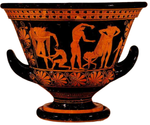 Red-figure krater with a representation of athletes’ preparation.