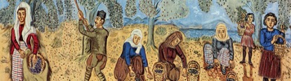 Folk painting showing olive harvest