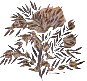 Representation of fossilized 60 000-year-old olive leaves of that were found in different areas of Greece like Santorini, Nisyros and around the ancient Knossos in Crete. The original fossilized olive leaves came to light with the excavations of the German archeologist Friedrich Hiller von Gaertringen in Santorini in 1895-1900 and they are exhibited at the Museum of Prehistoric Thera in Santorini. These fossils testify that the olive tree was an integral part of the Greek flora from ancient times, 60 000 years ago. Also, these fossils are the oldest findings that prove the presence of olive trees on the Greek islands and consequently the possible use of olive oil and olive fruits as a supplementary source of food during the Late Cycladic I period, i.e. the 17th century BC.