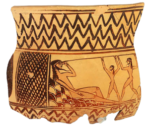 Copy of a fragment of an Attic krater dated to the 7th century BC. and today it is in the Archaeological Museum of Argos, in Greece. On the fragment there is a representation of the scene with the blinding of the cyclops Polyphemus by Odysseus and his companions. The famous cyclops, son of the ancient God Poseidon, known from Homer’s Odyssey (rhapsody 240-630), lived in a cave on the mythical island of Thrinakia (today’s island Heraklia of the Small Cyclades, Greece). He captured Odysseus and his companions in his cave and then began to eat them, until Odysseus blinded him with a burning pole. Legend has it that this pole was made of wood from a sacred olive tree. Another myth states that during the quests between the ancient Greek city-states, the most elite warriors carried weapons of the time made of wood from sacred olive tree. Thus, they marched towards the battlefield with the mentality of a winner, a fact that contributed substantially to their performance.