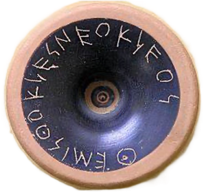 Representation of the two different ways of voting for the exile (banishment) of a citizen during the 5th-4th century BC. in the Greek areas. In Syracuse, in cases of voting to banish a citizen, the name of the one they wished to banish was written in ink on olive leaves. This process was called petalism. This event took place only once a year. The vote was secret, and the officials involved in its transparency process collected the olive leaves and ensured that no one fraudulently voted twice. Citizens who collected the most leaves with their name on were exiled from their city for 5 years. In ancient Athens, another process was applied, the ostracism. The names were engraved on fragments of vessels (ostraka) and the citizens who collected the most ostraka with their name on were forced to leave the city within 10 days for 10 years since they were considered too powerful or dangerous for their city. Ostracism was the supreme example of the power of the common people to deal with the abuse of power during the period of the Athenian democracy and lasted until the 4th century BC.