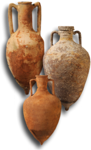 Copy of 58-60cm high pointed amphorae from the 2nd century BC. These amphorae were suitable for transporting olive oil, as evidenced by many findings from ancient Greek shipwrecks. Important findings came to light through the underwater archaeological research of the Ephorate of Underwater Antiquities that took place in 2019 on the Levitha island between the Cyclades and the Dodecanese in the Aegean Sea. A total of 5 ancient Greek shipwrecks were identified with a number of amphorae from the Greek islands of Knidos, Kos and Rhodes dating back to the 2nd – 1st century BC. These particular amphorae were so named from the pointed extension they have instead of a flat base. The pointed base probably served to save space in the storage of vessels. The large number of amphorae found in multiple Greek shipwrecks testify the importance of economic transactions of olive oil of that time.