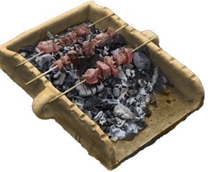 Β-3.2 Kandavlos: Small portable clay ember. Made with special slots to place the food that was passed on sticks – thin branches to cook more easily and quickly. It is believed to be the first extant portable grill. It is dated to the Late Cycladic period (1.550 – 1.100 BC) and was found in the Akrotiri area on the Santorini island, in Greece.